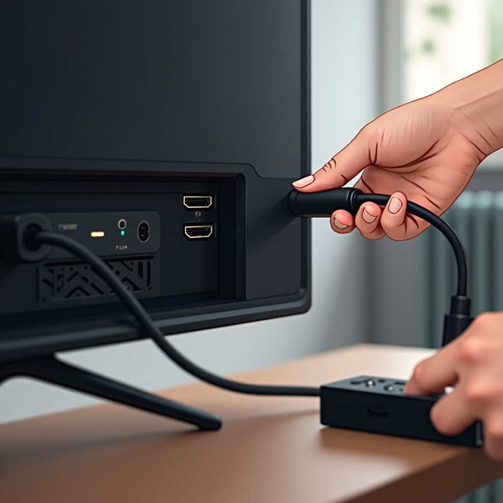 Tarkista HDMI-yhteydet: Varmista, että Firestick on securely yhdistetty oikeaan HDMI-porttiin. Jos näyttöä ei näy, yritä vaihtaa toiseen porttiin.