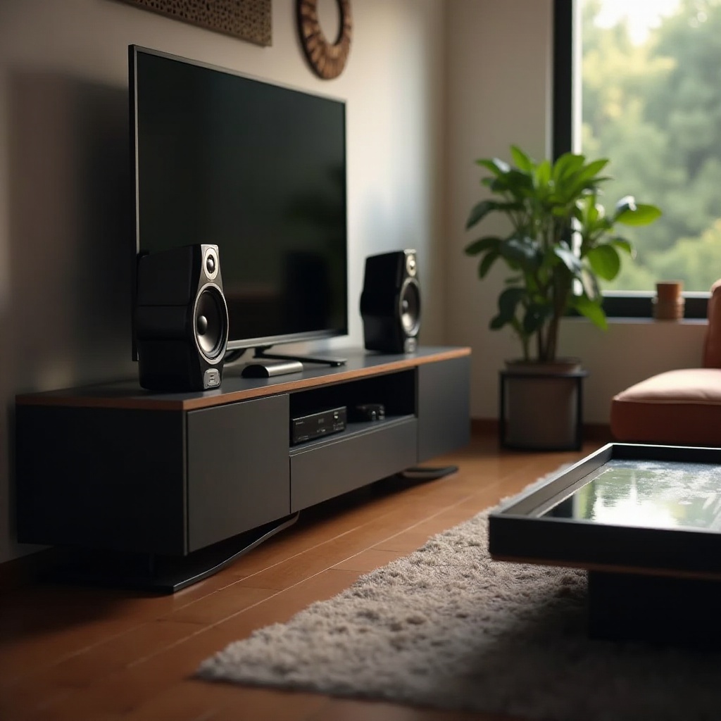 - 配置:最高の音響体験のためにスピーカーを耳の高さに配置し、セットアップの周りに均等に配置しましょう。
